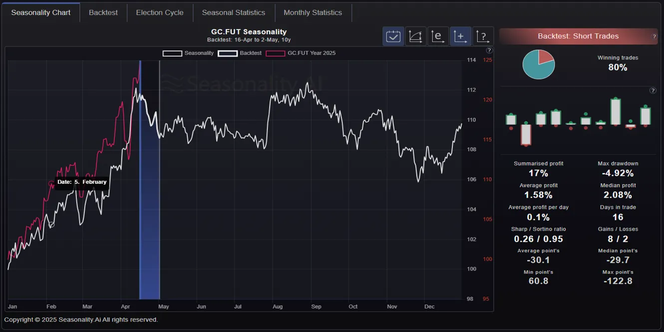 Just a few weeks ago, we highlighted a powerful seasonal long setup in Gold (XAU/USD) from April 1 to April 13 — and once again, seasonality delivered.